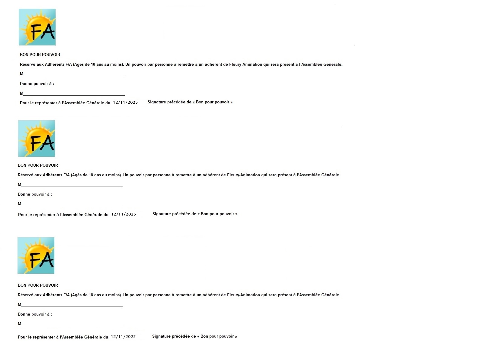 L'Association FLEURY ANIMATION à le plaisir de vous convier à son Assemblée Générale pour la saison 2025-2026 qui se déroulera le :