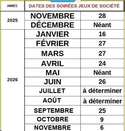 Ces dates sont communiquées à titre d'information, elles dépendent de l'utilisation de la salle municipale et sont donc susceptibles d'être modifiées .