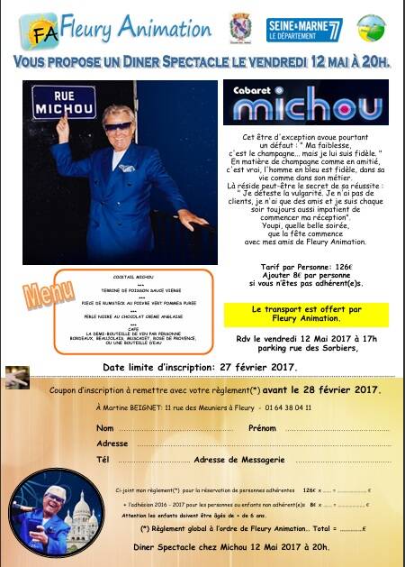 L’ASSOCIATION FLEURY ANIMATION VOUS PROPOSE