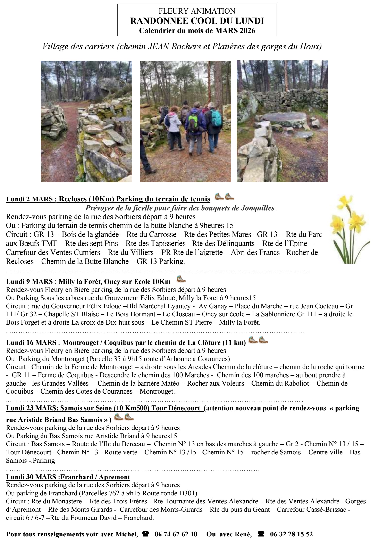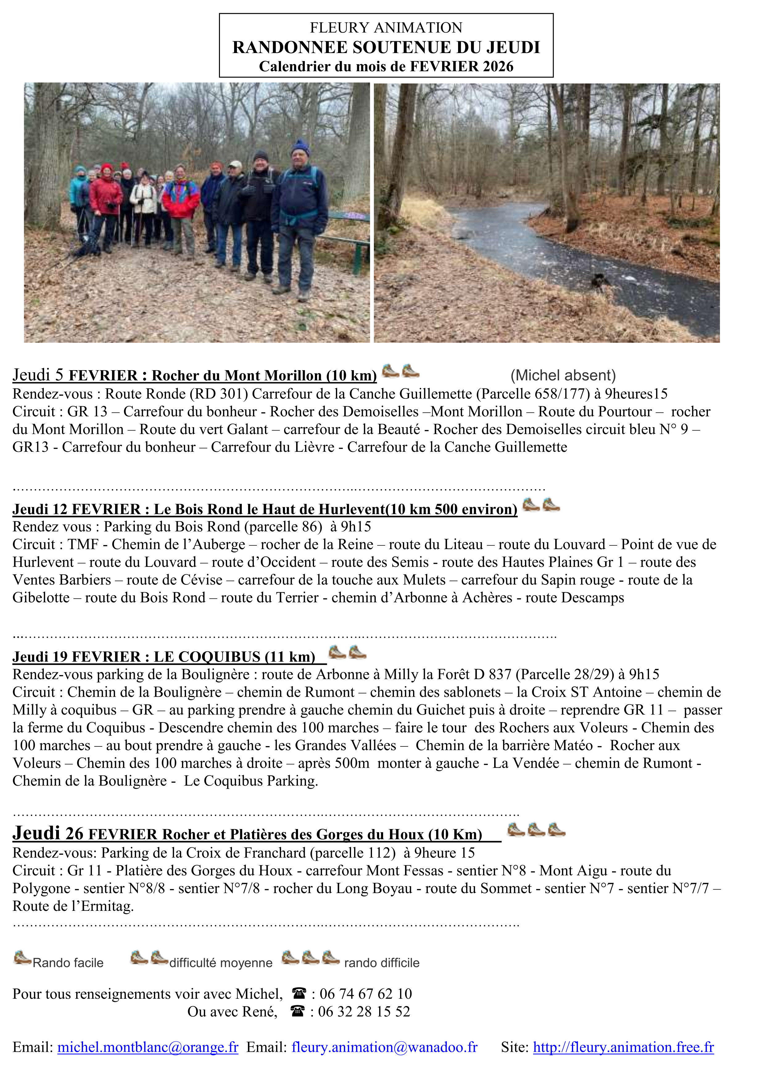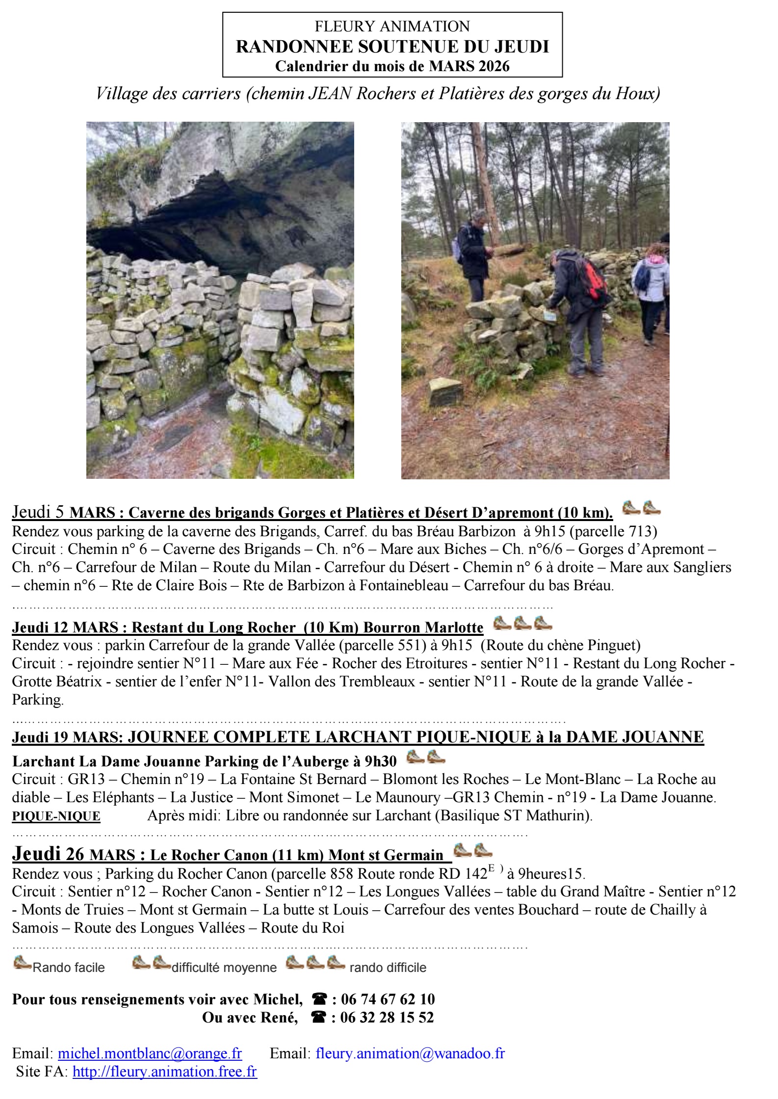 Explorez le magnifique massif de la forêt de Fontainebleau avec fleuryanimation.fr. Rejoignez nos 76 adhérents et Michel pour des randonnées mensuelles adaptées à tous les niveaux. Découvrez ici les parcours prévus pour le mois en cours et le mois suivant, et laissez-vous guider au cœur de la nature.